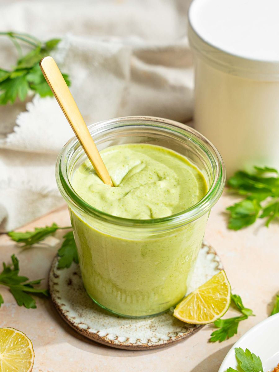 It’s creamy with that punch of lime and fresh cilantro that cuts through anything rich or spicy.